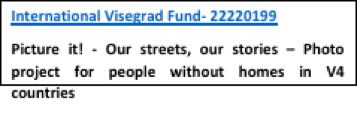 Picture It!-Our streets, our stories - photo project for people without homes in V4 countries” Project ID #: 22220199.
